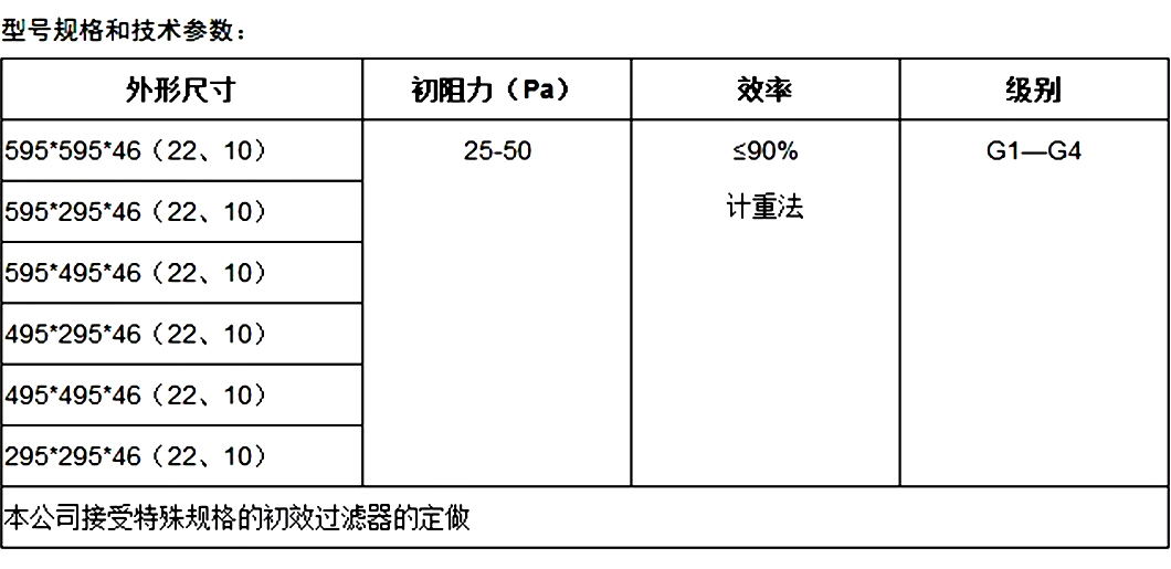 用途:適用于一般空調的初級過濾和凈化系統的預過濾。